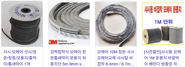 - 하이그로시 샤시용 비접착 모헤어: 기존 모헤어의 털 길이와 밑면 폭을 확인하고 같은 사이즈로 준비합니다.