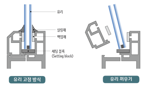 - 새 유리: 기존 유리와 같은 두께로, 정확한 사이즈를 재서 주문해야 합니다.