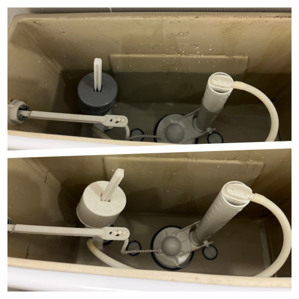 현장에 도착해 변기를 살펴보니, 고객님 말씀대로 물탱크(수조) 안에서는 물이 다 찼음에도 불구하고 급수가 완전히 멈추지 않아 오버플로우 관으로 물이 계속 흘러넘치고 있었습니다.