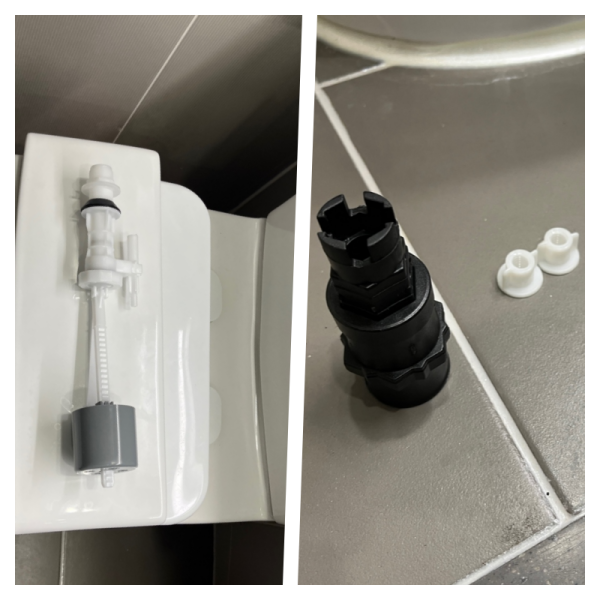 이는 물 수위를 조절하고 급수를 차단하는 필밸브의 고장이 명확한 상황이었습니다. 내부에 있는 작은 부품이 노후되어 제 역할을 못 하고 있었던 것이죠.