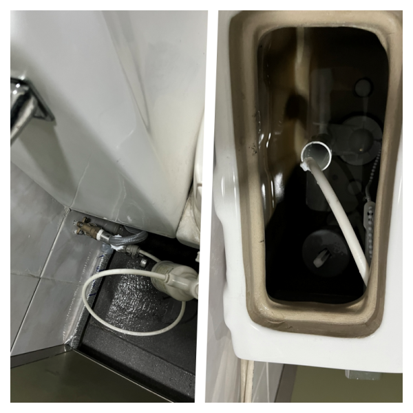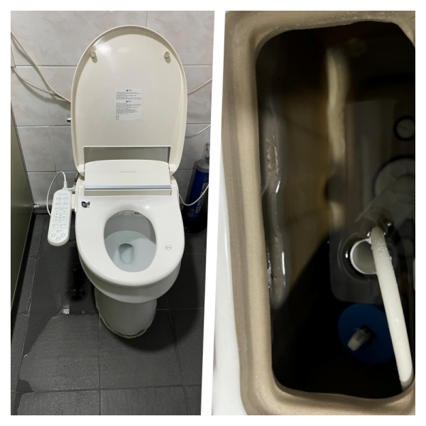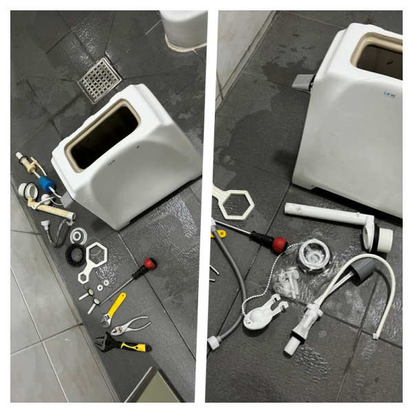 - 물탱크 분리: 물탱크 하단의 고정 너트와 급수 호스를 풀어, 변기 본체와 물탱크를 조심스럽게 분리했습니다.