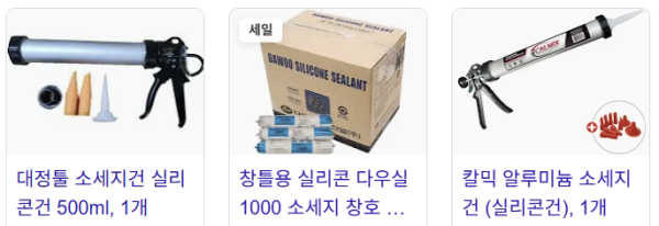 이 틈을 메우려면 일반 실리콘 한두 통으로는 어림도 없을 때가 많습니다. 그래서 전문가들은 가성비 좋고 양도 많은 **’소시지 실리콘’**을 사용하죠!
