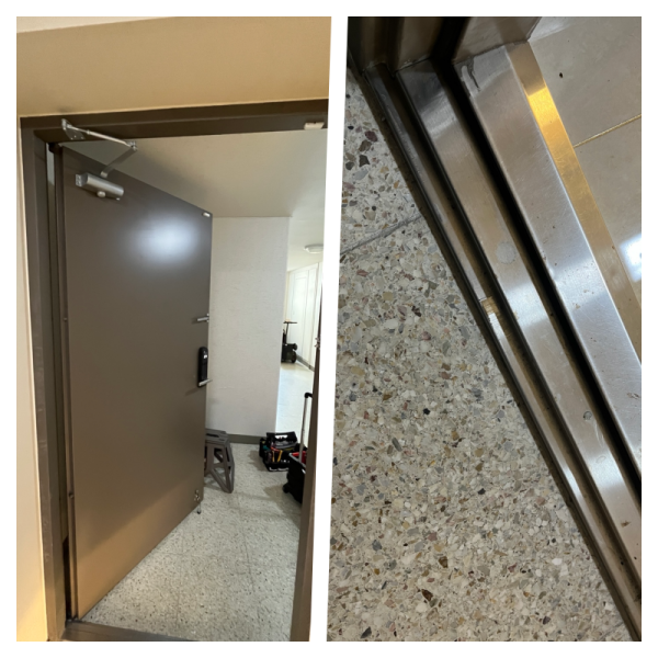 방화문 피벗 힌지 교체는 문을 완전히 탈거해야 하는 고난도, 고위험 작업입니다. 안전을 최우선으로 작업을 시작했습니다.