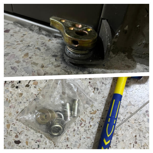- 새 힌지 교체: 튼튼한 내구성을 가진 국산 정품 피벗 힌지로 교체했습니다. 문틀 쪽 힌지 축이 흔들리지 않도록 용접 부위를 확인하고 단단히 고정했습니다.