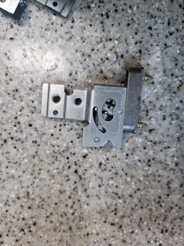 - 고정 부속 분리 (핵심!): 슬라이딩 레일 측면에 붙어있는 **’앞면 고정 장치(브라켓)’**를 확인했습니다. 이 부분이 헐거워져 앞판을 놓친 상태였습니다. 레일에서 이 고정 부속을 분리하여 상태를 점검했습니다.