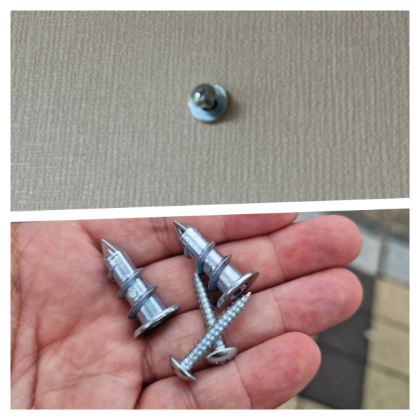 - 천공앙카 삽입: 나비처럼 날개를 펴서 벽 뒤에서 넓게 지지해 주는 **’천공앙카’**를 구멍에 넣고 단단히 조여주었습니다. 이렇게 하면 무거운 액자를 걸어도 벽이 손상될 걱정 없이 안전합니다.