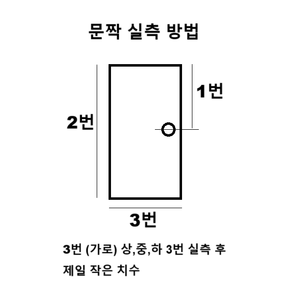 - 너비 & 높이: 기존 문짝의 가로, 세로 길이를 3곳 이상 측정하여 가장 작은 값을 기준으로 주문합니다.